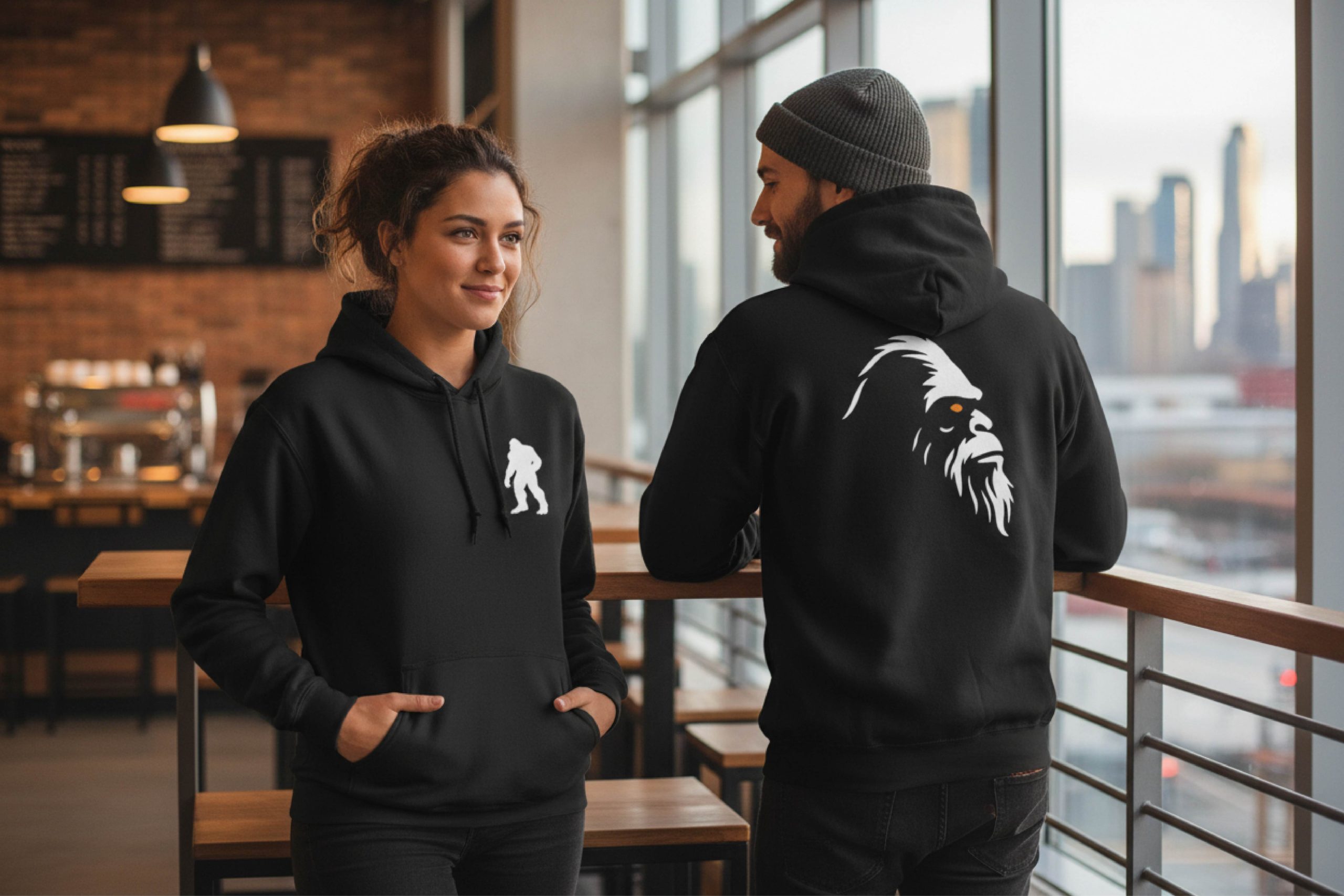 Premium Black Hoodie White Sil Front/White head Logo Back